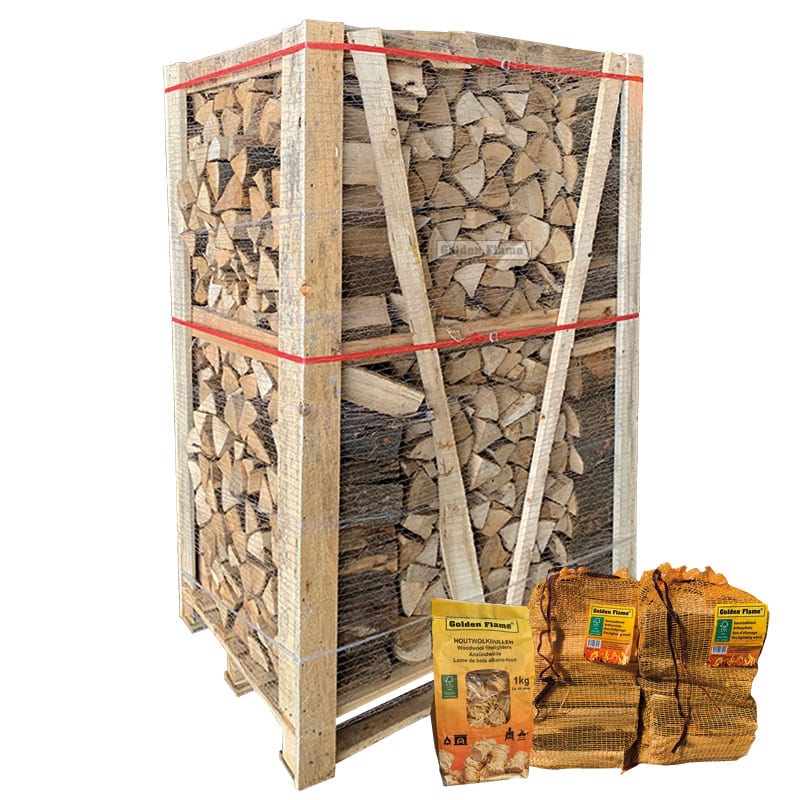 - Ovengedroogd haardhout met vochtpercentage van gemiddeld 18 %